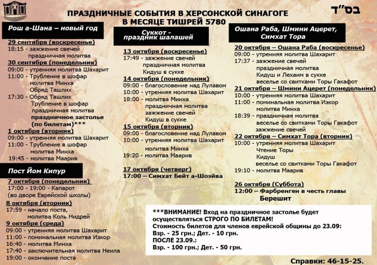 Синагога «Хабад Херсон», тел: +380552 46-15-25, факс: +380552 46-15-65, chabadkherson@gmail.com | г.Херсон, 73025, ул. Театральная, 27