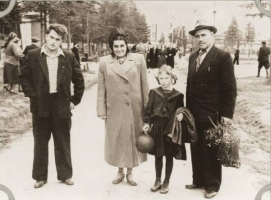 Вася Аксенов, Евгения Гинзбург, сестра Тоня и Антон Вальтер. Парк им. Горького. Магадан (1952 г.)