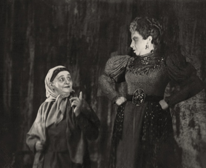 Одна за другой выходили премьеры, сделавшие театр и его актеров известными в стране; театр обрел свое лицо и собственный голос. О нем много писали в республиканской прессе на идише и по‑белорусски. Гастроли по республике, на Украине, в Поволжье, Закавказье, Ленинграде, в присоединенном Белостоке в 1940 году позволили тысячам зрителей познакомиться с искусством еврейских актеров. Кроме этого, постоянно давались выездные спектакли на предприятиях, в колхозах и воинских частях. Несколько сохранившихся у меня фотографий из спектаклей, в основном неподписанных, скорее всего, относятся именно к этому времени. К сожалению, точно установить, в каких именно постановках были задействованы Р. Каплан и Н. Трейстман, я не могу и лишь примерно представляю себе их амплуа. Им были по плечу возрастные роли, зачастую характерные, преимущественно в национальном репертуаре, скорее комического, чем драматического плана.