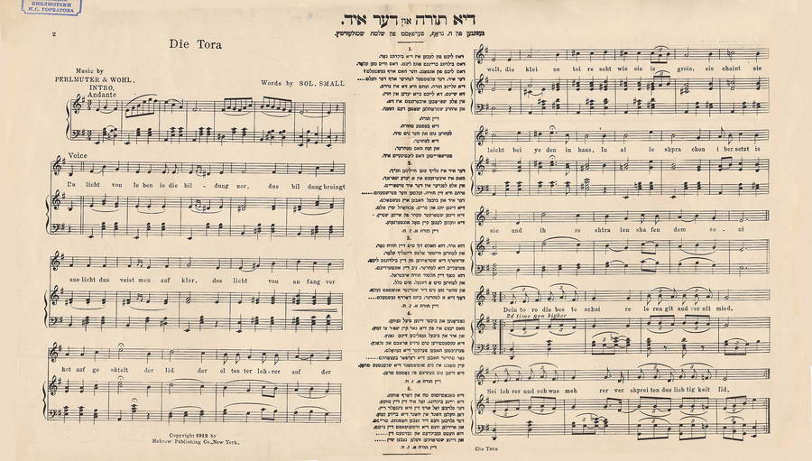 Перед нами ноты песни Die Torah («Ди Тойре») из архива антиквара и библиографа Игоря Горбатова. На первый взгляд это всего лишь небольшое музыкальное издание. Но за этими нотами проступает целая культурная эпоха — мир раннего идишского театра и жизни еврейских эмигрантов в Нью‑Йорке.