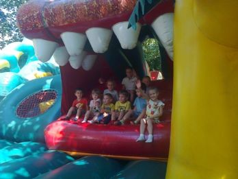 Много радостных впечатлений осталось у наших детей после посещения детской площадки «Фламинго» . Ребята развлекались на различных качелях, горках, лабиринтах, прыгали на батутах. Но особенно понравилась игра «Рыбалка»: дети соревновались в ловле пластмассовых рыбок из бассейна. Игры чередовались с отдыхом, во время которого они отгадывали загадки, ребусы, кроссворды, повторяли выученные стихи и пили вкусный сок. Задорные и веселые дети возвратились в детский сад.