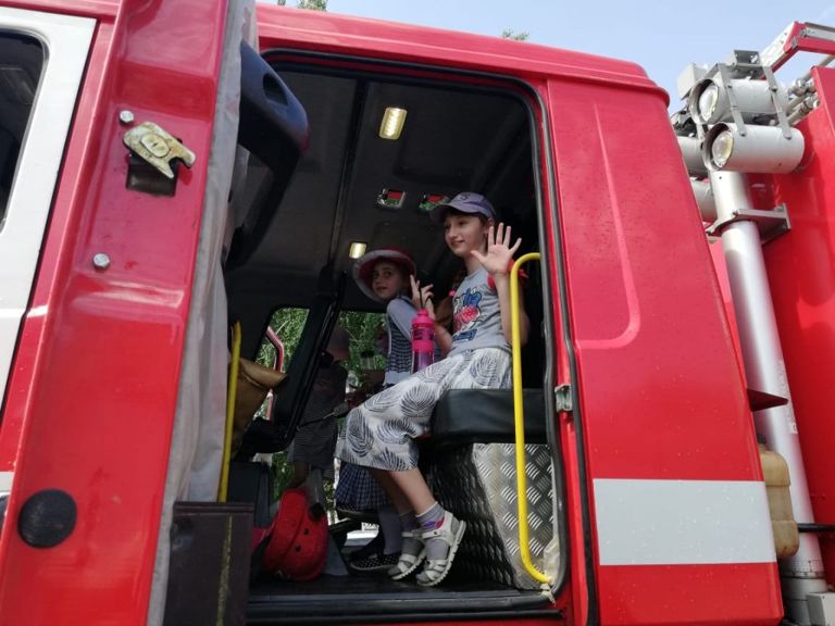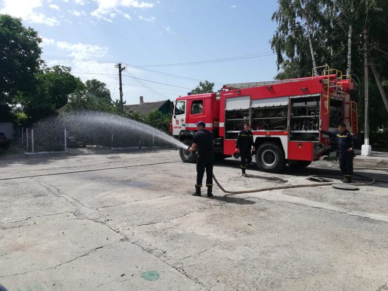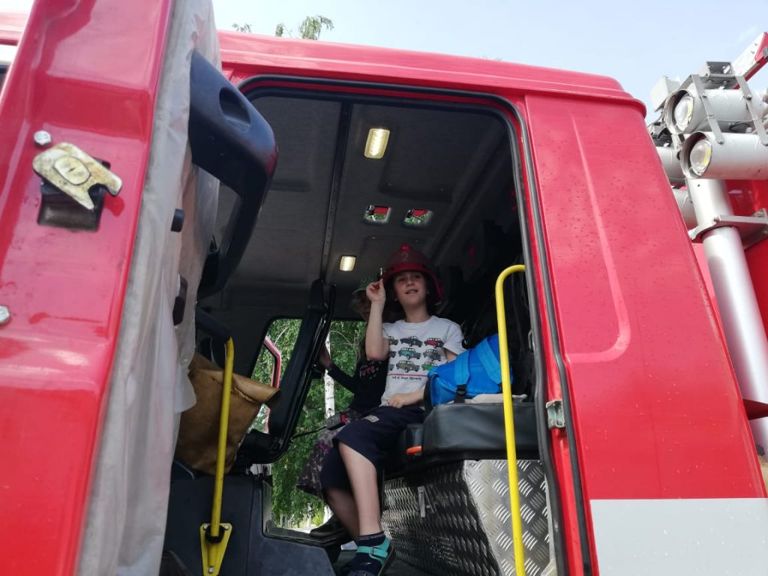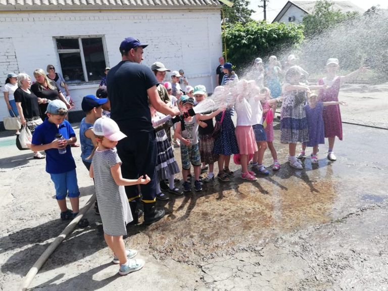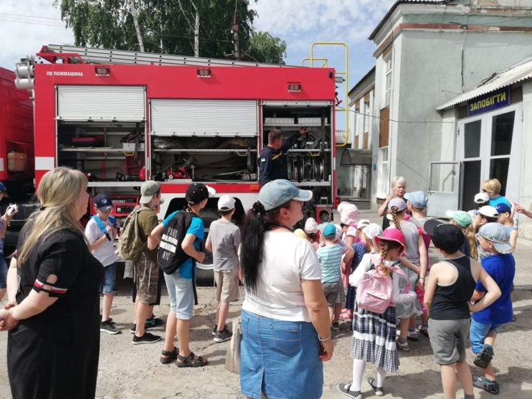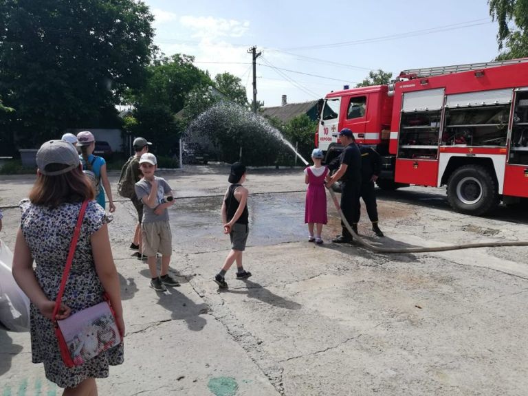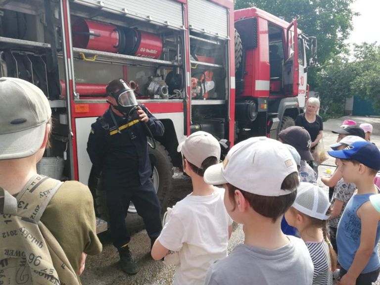 Сегодня в лагере День безопасности жизнедеятельности, поэтому мы в гостях в 10 государственной пожарно-спасательной части Главного управления ГСЧС Украины в Херсонской области.