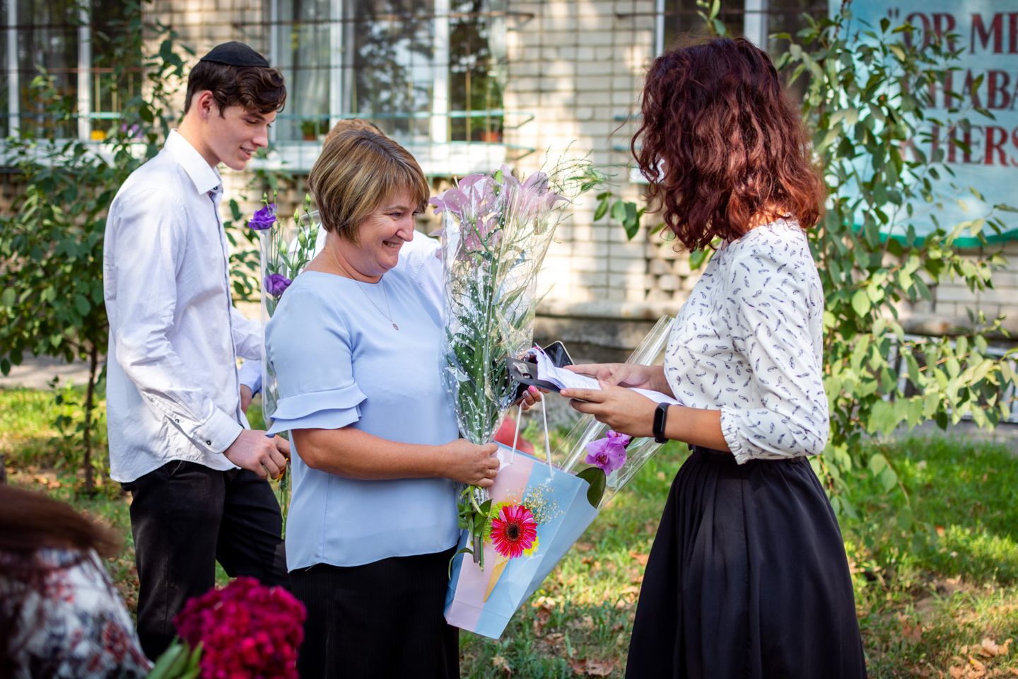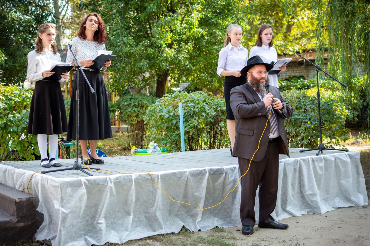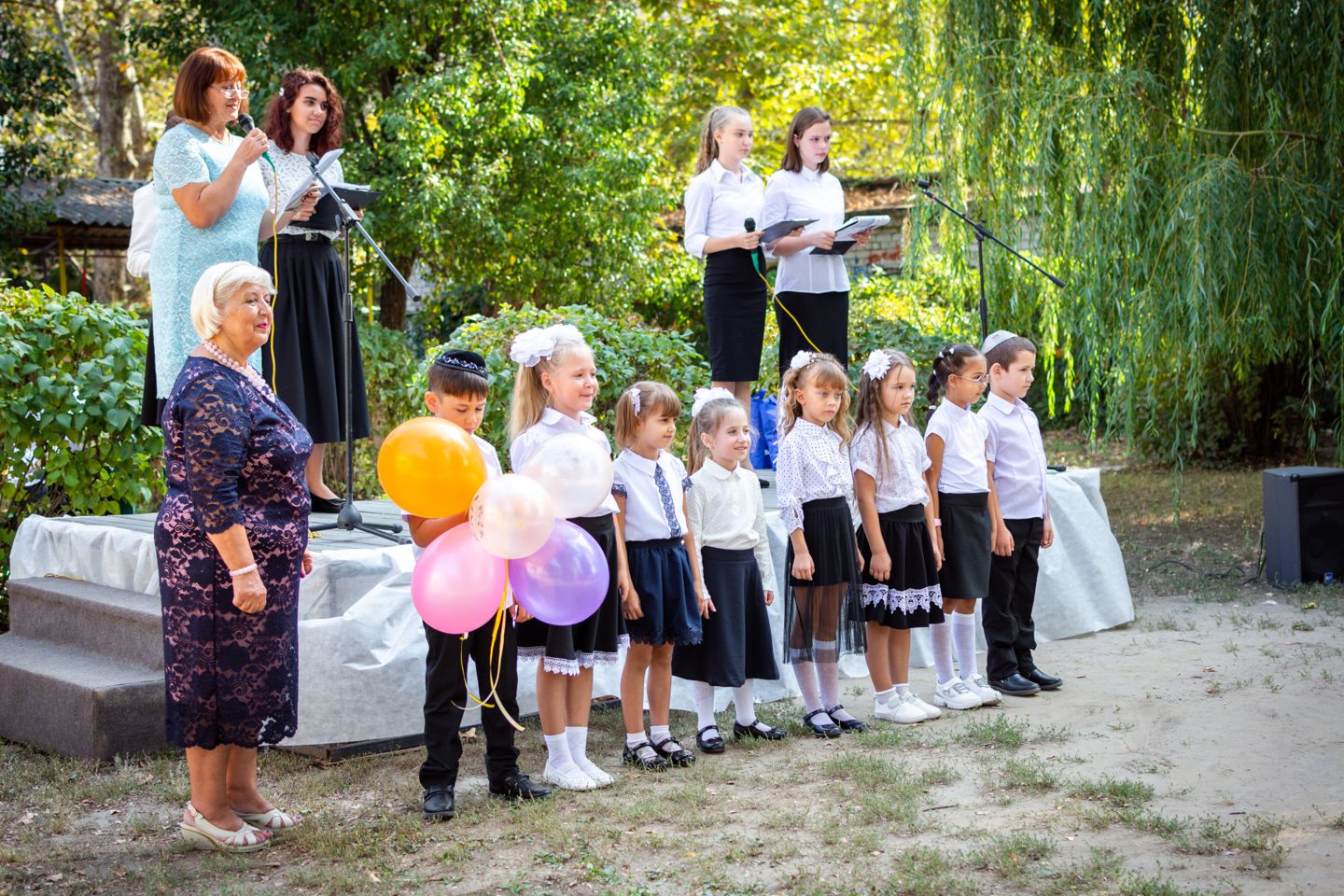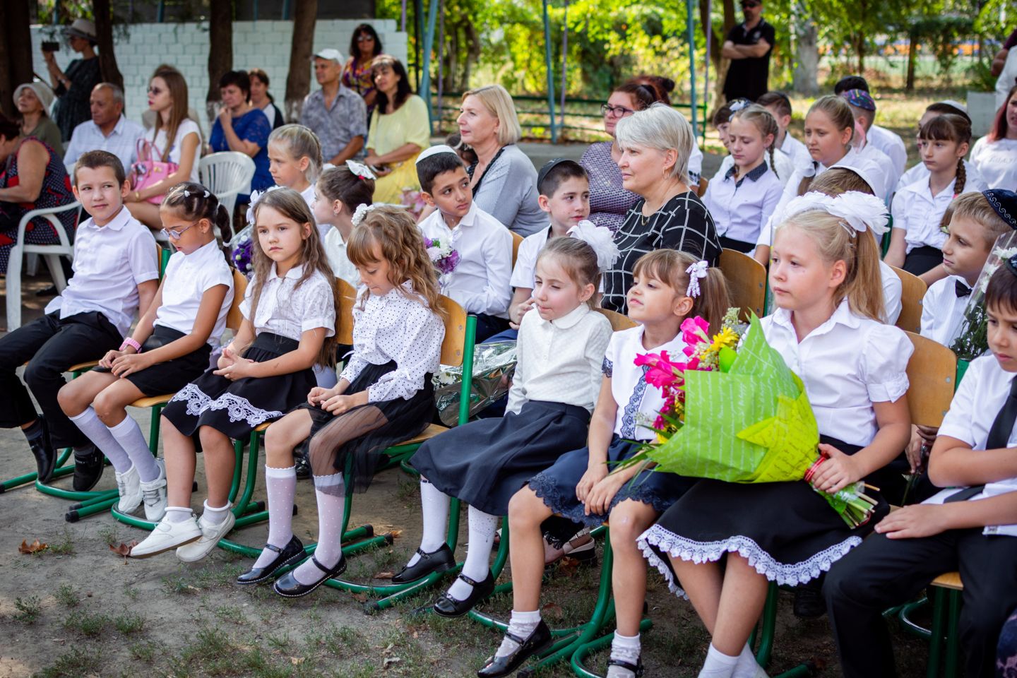 Воспитанников УВО «ХАБАД» приветствовали главный раввин Херсона и Херсонской области Йосиф Ицхак Вольф, директор школы Левин Игорь Ильич, директор Еврейского благотворительно-общинного центра «Хесед Шмуэль» Александр Павлович Вайнер, волонтер Еврейского благотворительно-общинного центра Хесед Шмуэль Елена Гельман, автор городских фотопроэктов «Вишивання історії», «Світ очима літературних героїв», сотрудница Херсонськой обласной библиотеки для юношества им. Б. Лавреньова Валентина Моисеева.