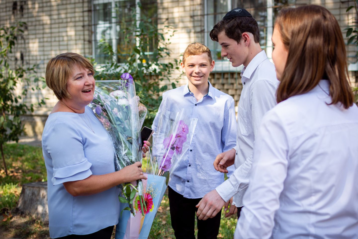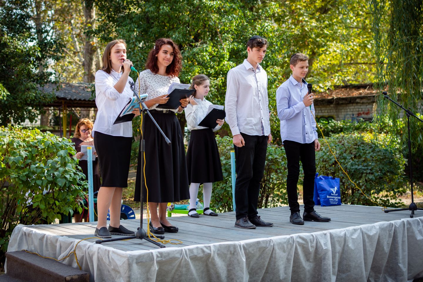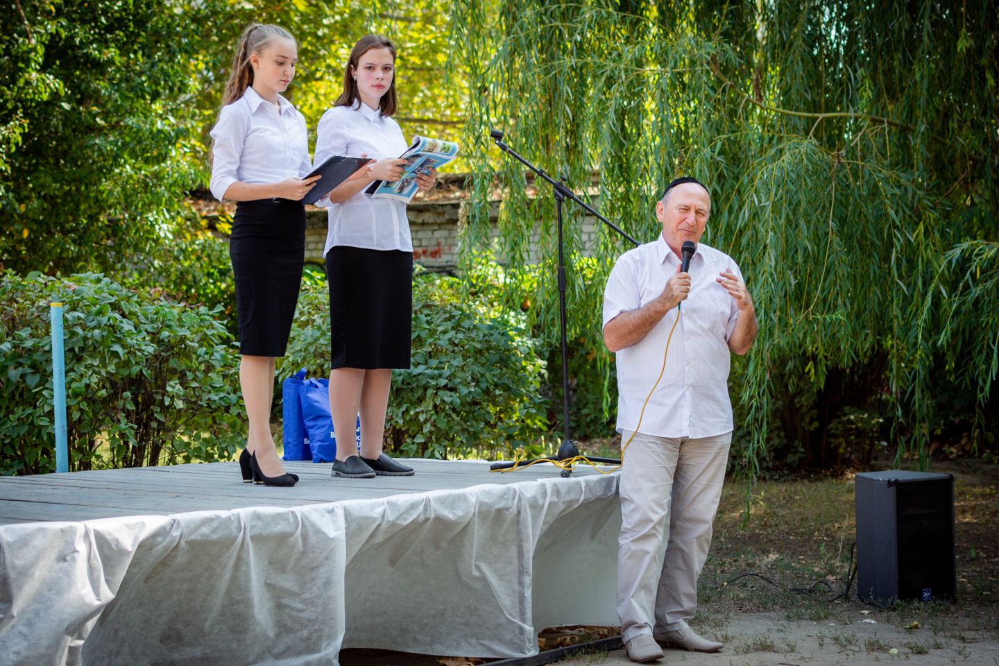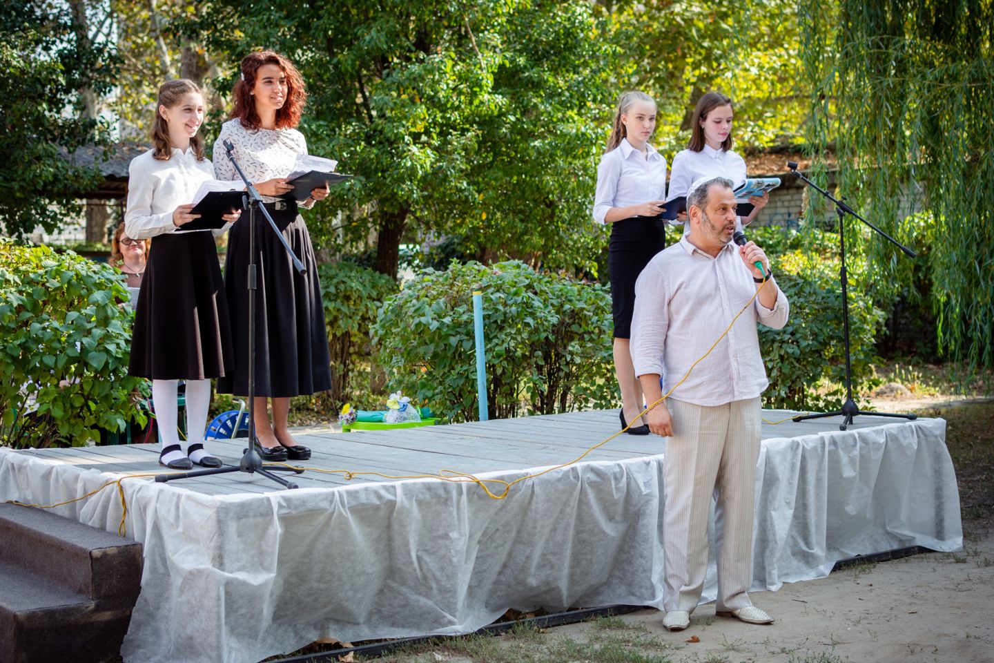 Воспитанников УВО «ХАБАД» приветствовали главный раввин Херсона и Херсонской области Йосиф Ицхак Вольф, директор школы Левин Игорь Ильич, директор Еврейского благотворительно-общинного центра «Хесед Шмуэль» Александр Павлович Вайнер, волонтер Еврейского благотворительно-общинного центра Хесед Шмуэль Елена Гельман, автор городских фотопроэктов «Вишивання історії», «Світ очима літературних героїв», сотрудница Херсонськой обласной библиотеки для юношества им. Б. Лавреньова Валентина Моисеева.