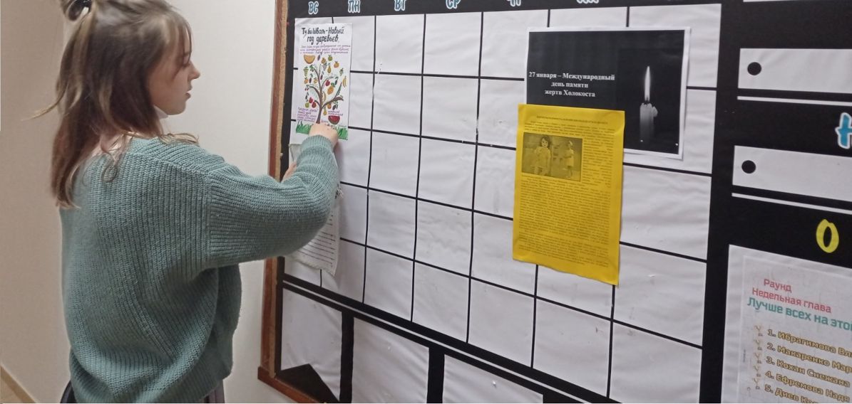 Январь прошел в формате очно-дистанционного обучения. А мы продолжили еженедельные выпуски “Хасидских историй”, провели заседание, на котором обсудили планы на 2 семестр, обновили материал на стенде ” Традиции еврейского народа”, провели акцию ” Нет Холокосту”.