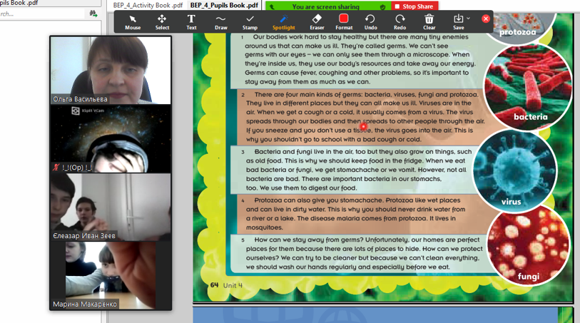 Ребята старшей группы модуля “Английский язык” проекта Level Up by Smart j работали в отдельных сессионных залах, обсуждали правила гигиены, которые позволяют сохранять здоровье. Проектная деятельность помогла узнать, где живут бактерии, чем опасны вирусы, как микроорганизмы и грибки влияют на наше самочувствие. Было много новых терминов. Но…как знать, может перед нами будущие великие вирусологи – светила мировой медицины?!
