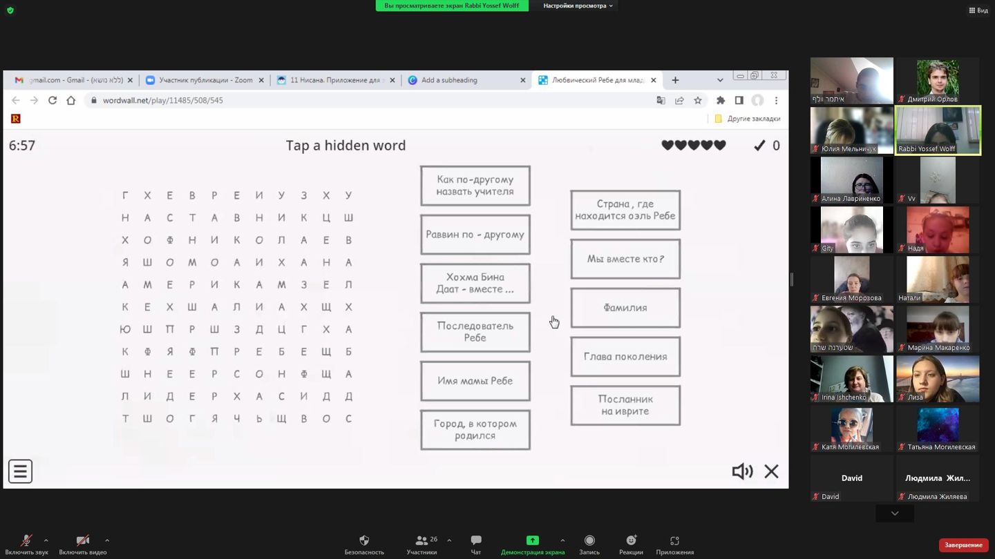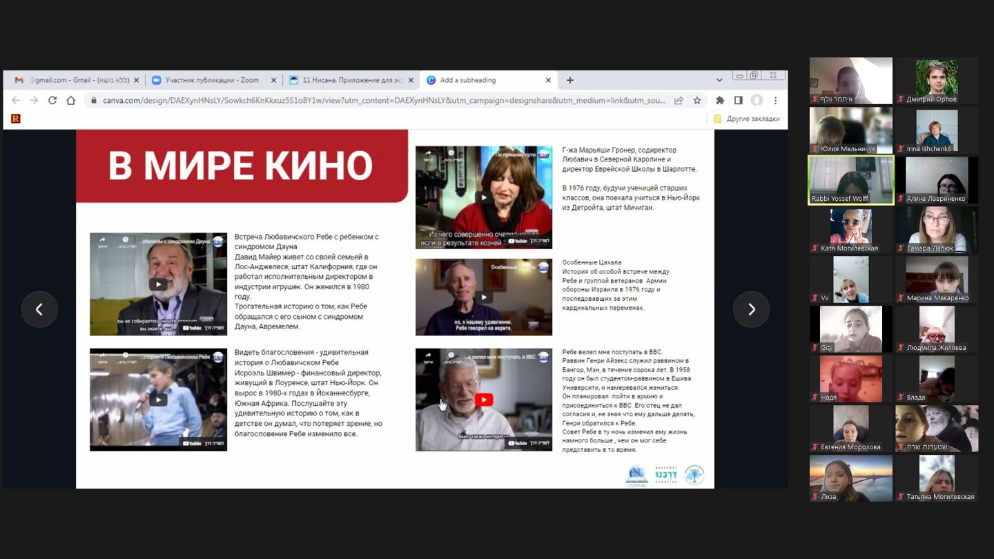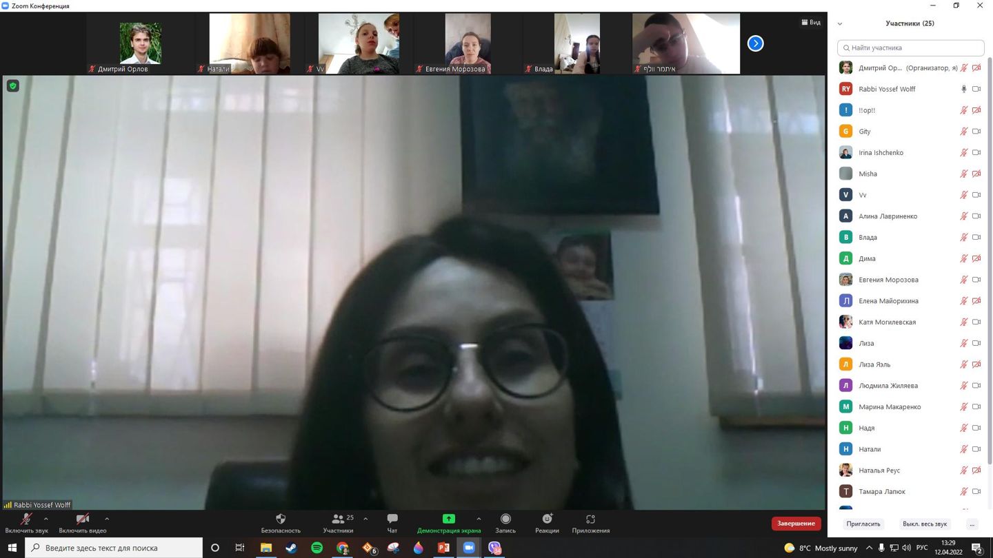 Сьогодні, 11 Нісана, святкують ДЕНЬ НАРОДЖЕННЯ РЕБЕ. Для вихованців НВО “ХАБАД” годину спілкування провела ребецен Хая Вольф. Діти познайомилися з історіями людей, які мали можливість поспілкуватися з РЕБЕ, поговорили про те, чому важливо робити добрі справи, особливо в такий непростий час, а також виконали цікаві інтерактивні завдання.