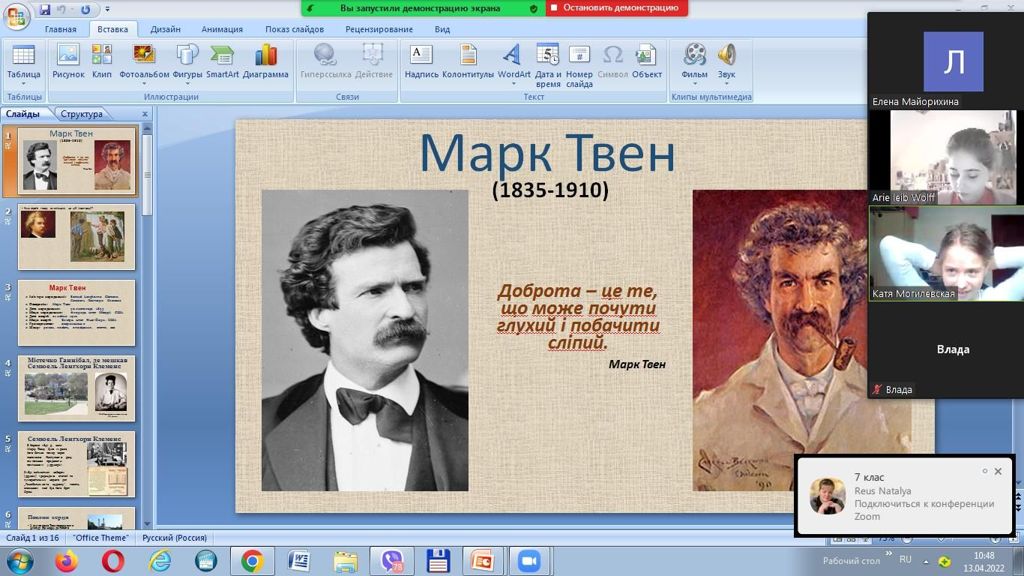 На уроках літератури учні НВО “ХАБАД” говорили про цінності, які непідвладні часу. Бути добрими, не втрачати почуття гумору вчилися п’ятикласники в Тома Сойєра, героя повісті Марка Твена. Учні 9 класу роздумували про сімейні цінності разом із персонажами драми Г. Ібсена “Ляльковий дім”.