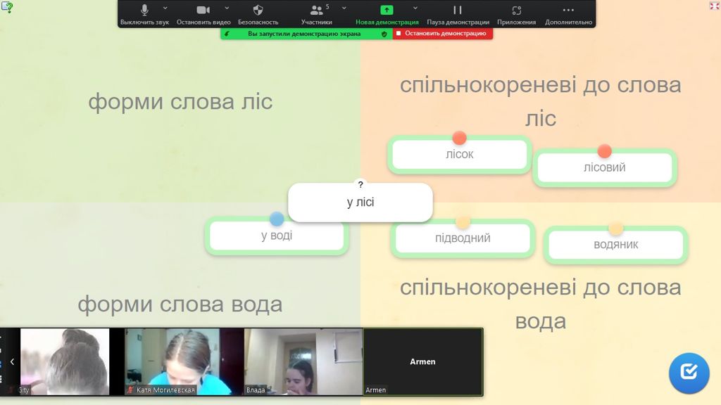 Цього тижня на уроках української мови п’ятикласники вчилися розрізняти спільнокореневі слова та форми слів, виділяти значущі частини слова, а також пояснювати основні способи словотворення і складати слова, що надають мовленню емоційного забарвлення.
